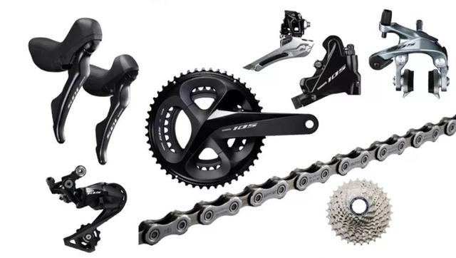 与山地车一样,公路车变速系统同样包括飞轮、中轴、牙盘、链条、手变(山地车上叫指拨)、后拨、前拨和线管。不过不同于山地变速,公路变速系统更偏向于竞速,气动性能和轻量化,而山地变速则更注重越野性能和刚性、耐用性。